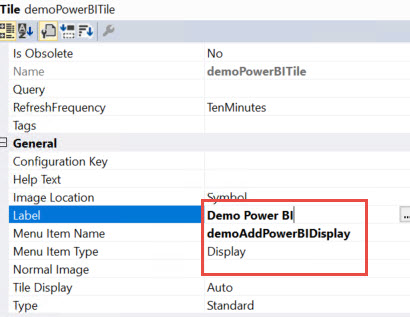 10 . Once created, select your display menu item in tile properties. And give the label.