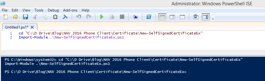 3. Run the following command: Import-Module .\New-SelfSignedCertificateEx.ps1.