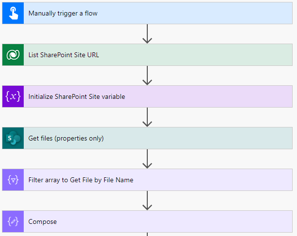 This is the child flow and it accepts the SharePoint document library, folder and the filename as parameters.2. SharePoint Site URL